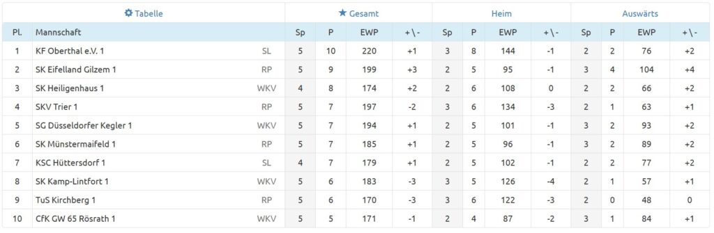 Gilzem hingegen fährt verdient mit 13 Überspielungen den Auswärtspunkt ein und steht nach 5 Spieltagen sehr zufrieden mit „plus 3“ in der Tabelle.